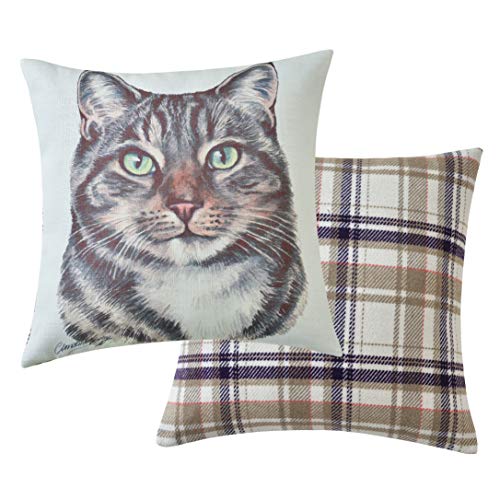 Maturi Filled Seat Cushion with Tabby Cat Watercolour Image, Chair Sofa Pillow - 43 x 43cm / 17 x 17-inch