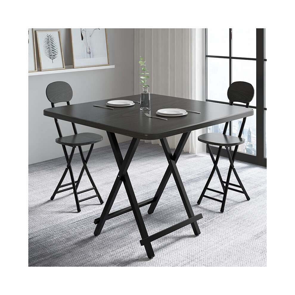 (Black) 80cm Folding Dining Table and 2 Chairs Space Saving Kitchen Table Chairs Set