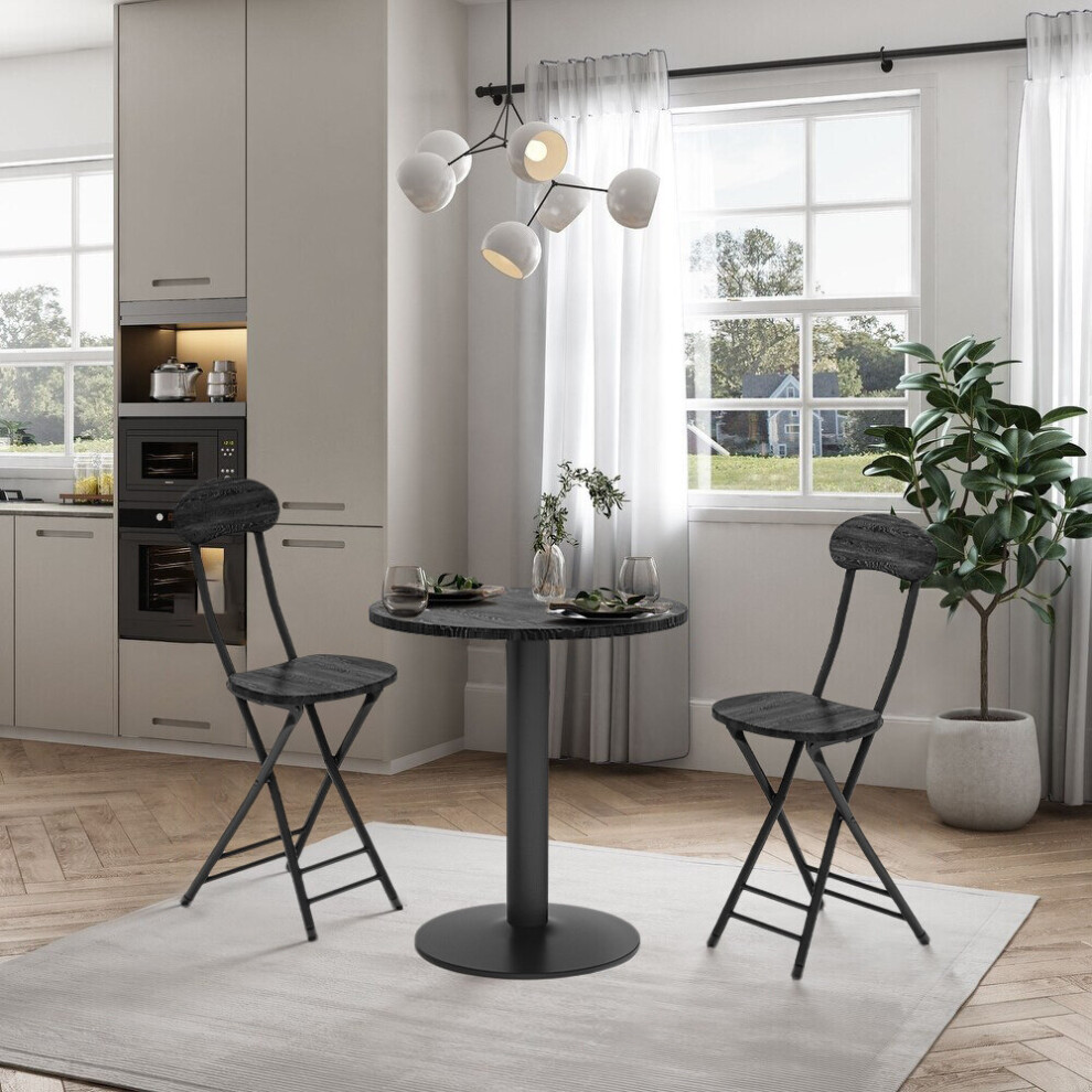 (Black) 59cm Round Table and 2 Folding Chairs Kitchen Table Chairs Set