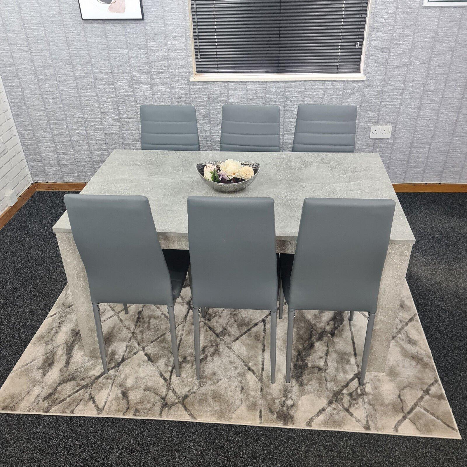 Dining Table and 6 Chairs Stone Grey Effect Kitchen Dining Set for 6
