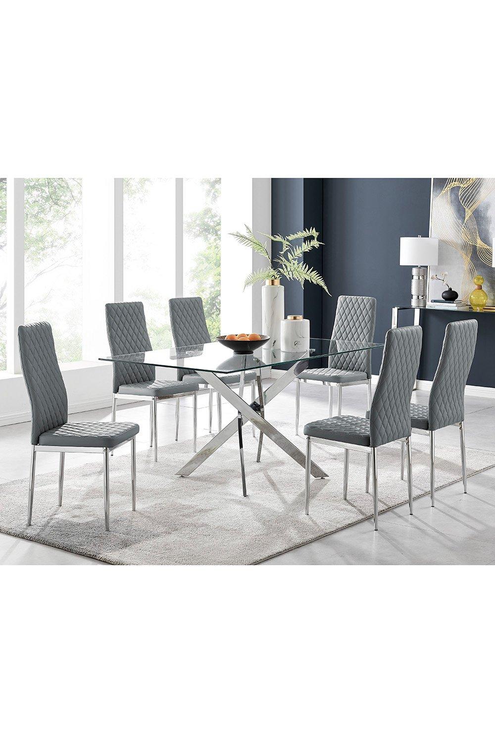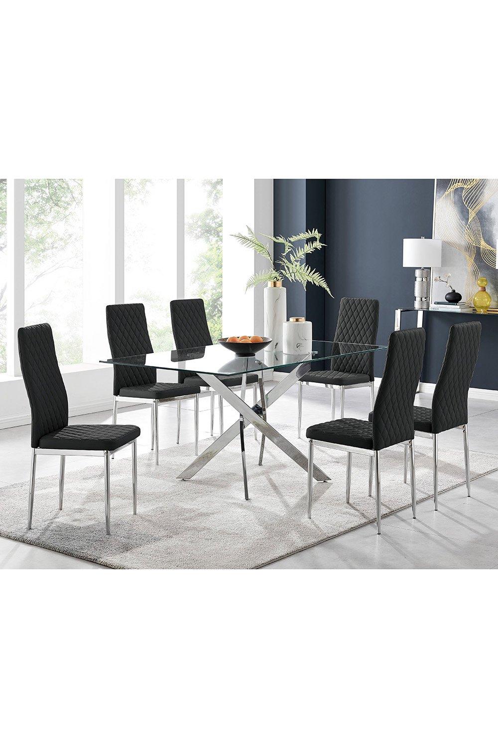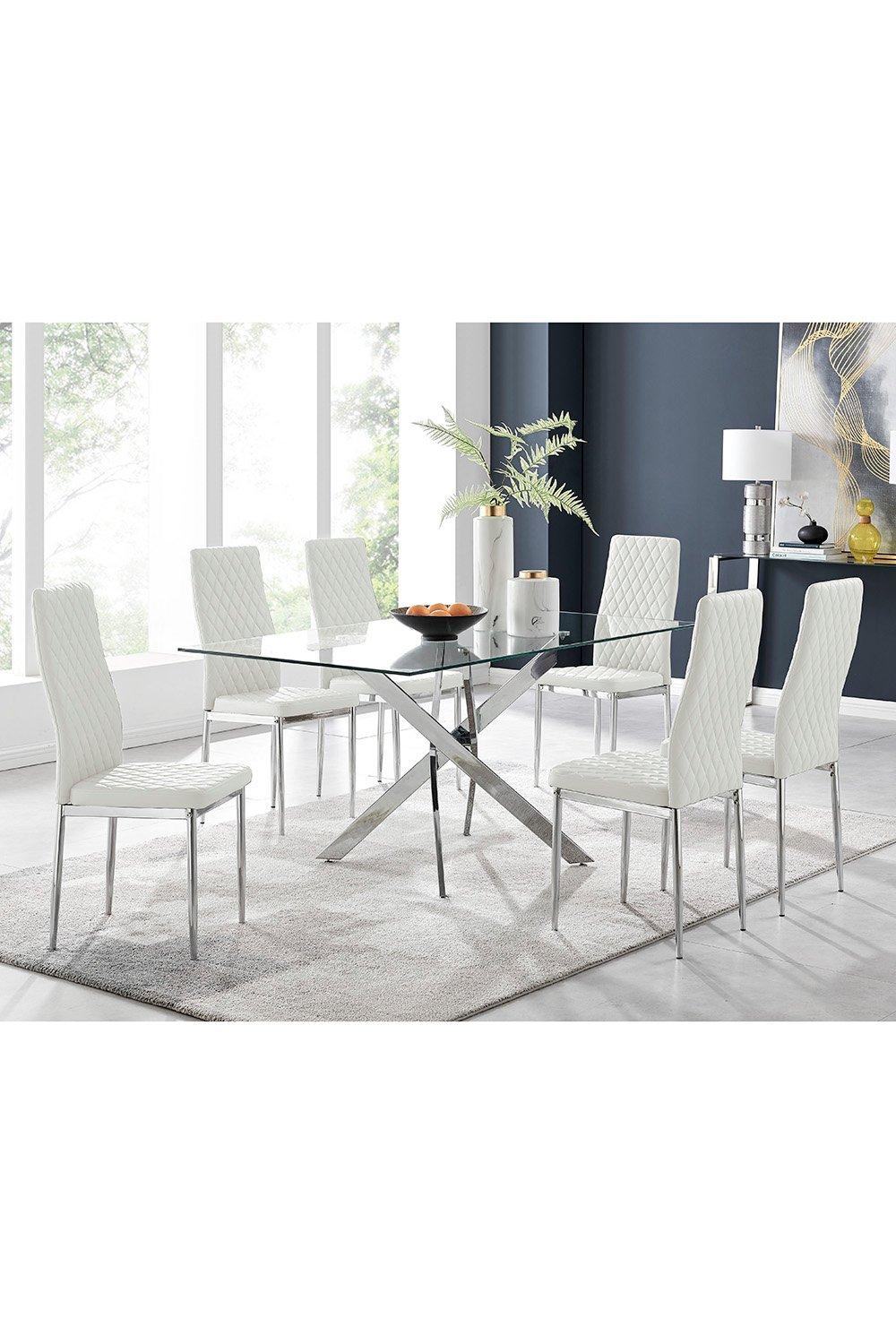 Leonardo Glass And Chrome Metal Dining Table And 6 Milan Chairs Dining Set