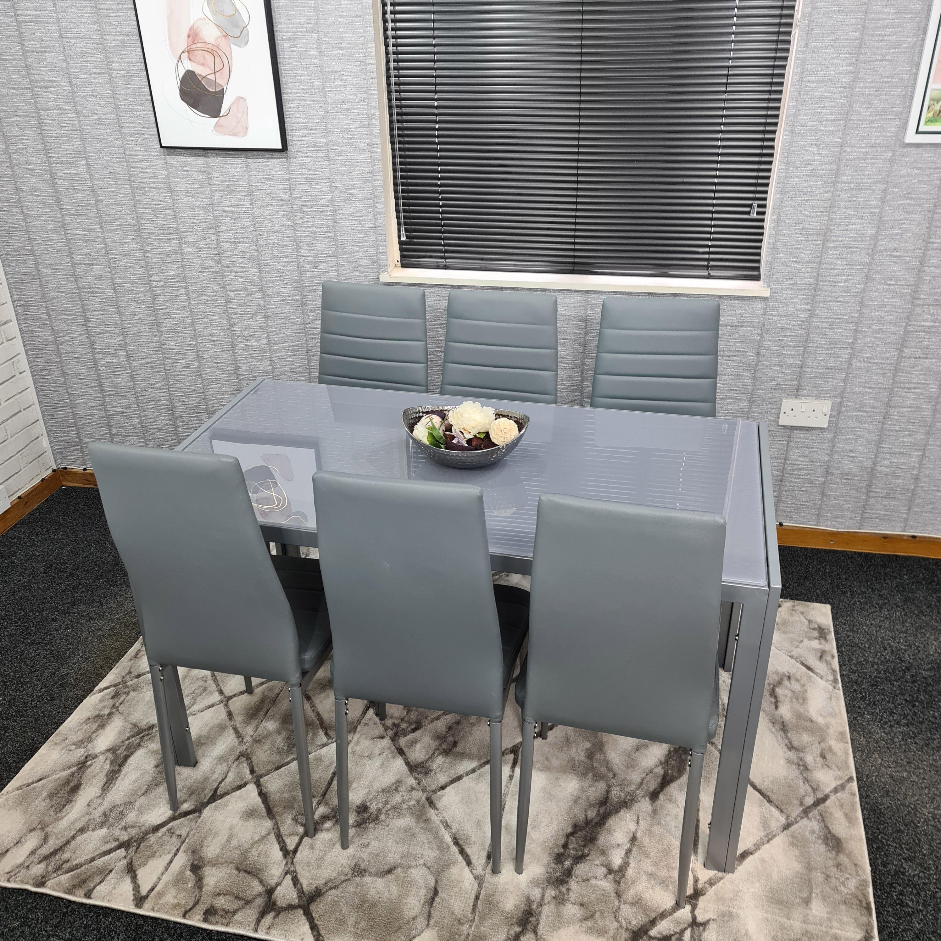 Glass Dining Table and 6 Chairs Kitchen Dining Table and Chairs set 6