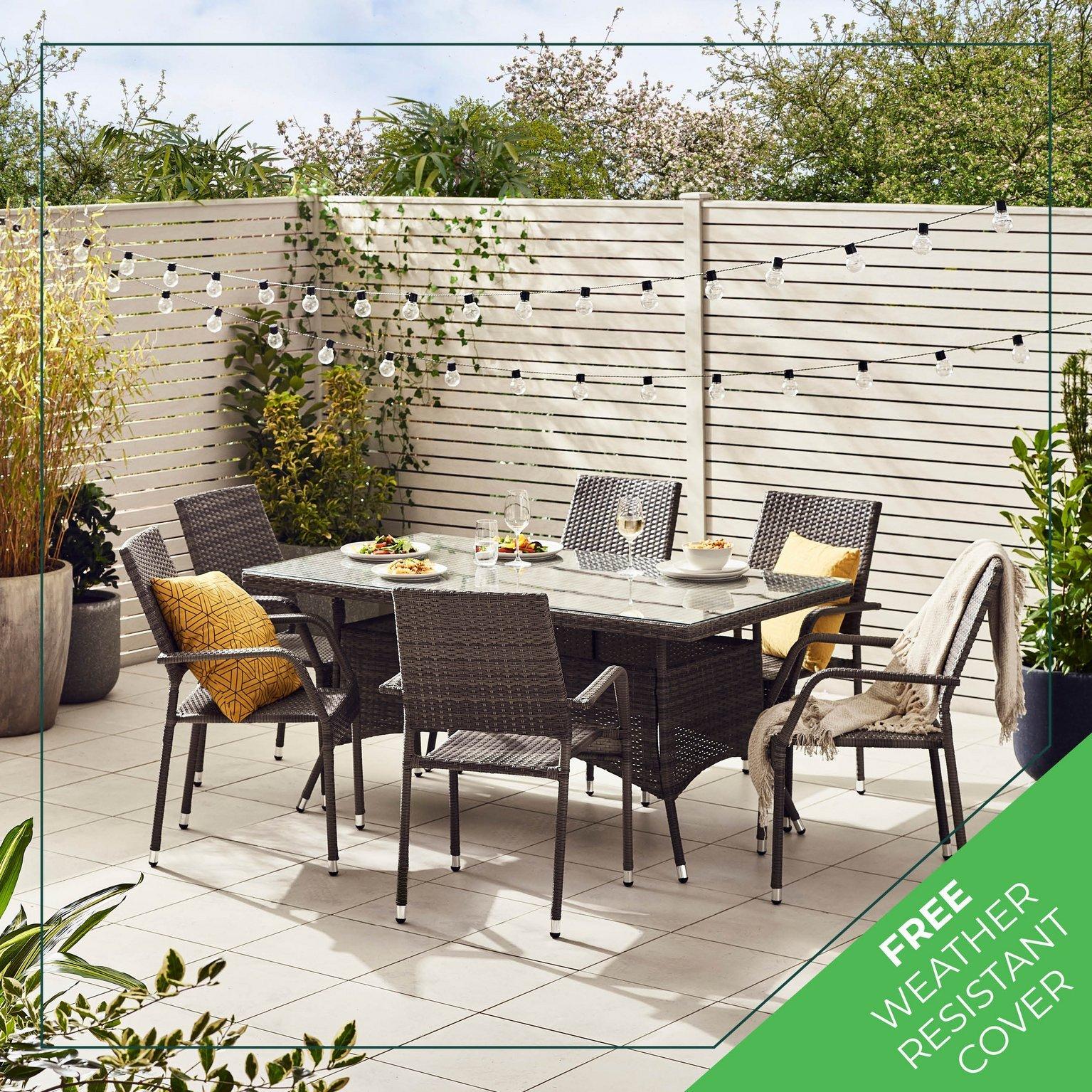 Oak Furniture King Giardino Rattan 6 Seater Cube Dining Table & Chairs Set with