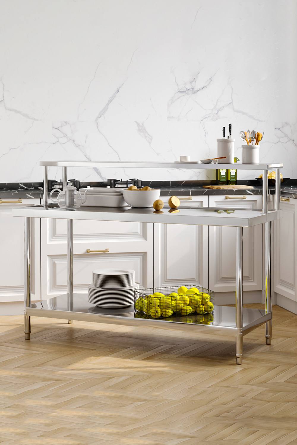 Living and Home Stainless Steel Kitchen Prep Work Table Bench Over Shelf in Silver