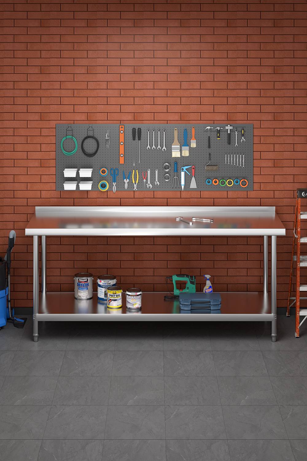 Living and Home 2 Pcs Stainless Steel Storage Prep Work Table with Overshelf Worktop Bench for Kitchen Garage Laundry Outdoor in Silver