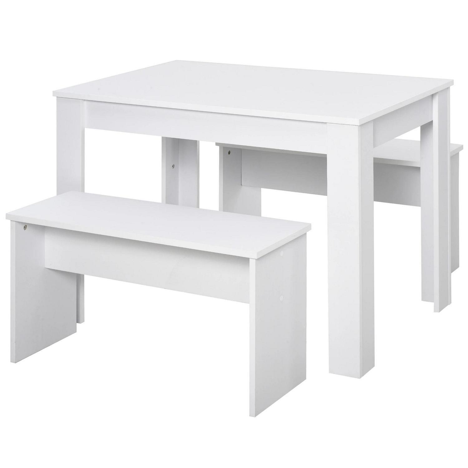 HOMCOM 3 Pcs Modern Dining Table Set w/ Table 2 Bench Seats Compact Kitchen Home