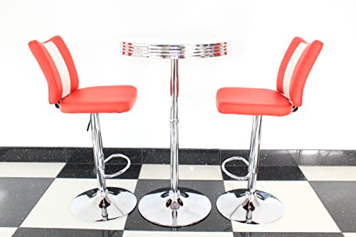 Just-Americana.com American 50s Diner Furniture Retro Style Bistro Table and 2 Red Stools With Arms