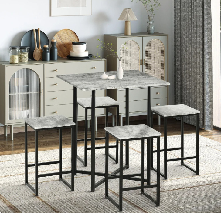 Bar Table and 4 Stools Kitchen Counter Height Dining Furniture Modern Breakfast