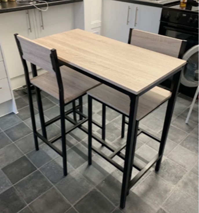 Kitchen Dining Table and 2 Stools Set Small Space Saving Breakfast Bar Furniture