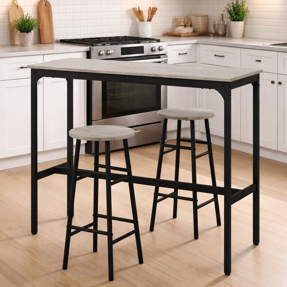 Bar Table and 2 Stools Kitchen Set with Padded Seat Breakfast Small Dining Table and 2 Chairs Set/Easy Assembly