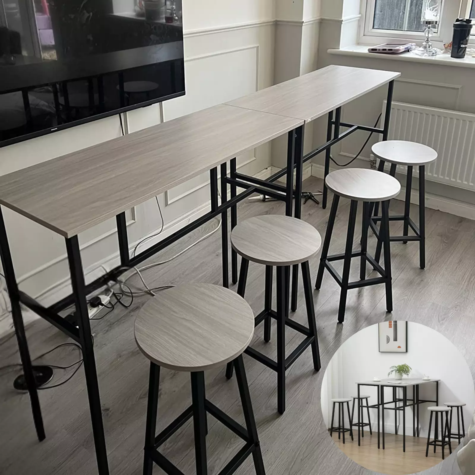 Susany Breakfast Bar Set, 1 Round MDF Table and 2 Modern Stools for Kitchen Dining Room