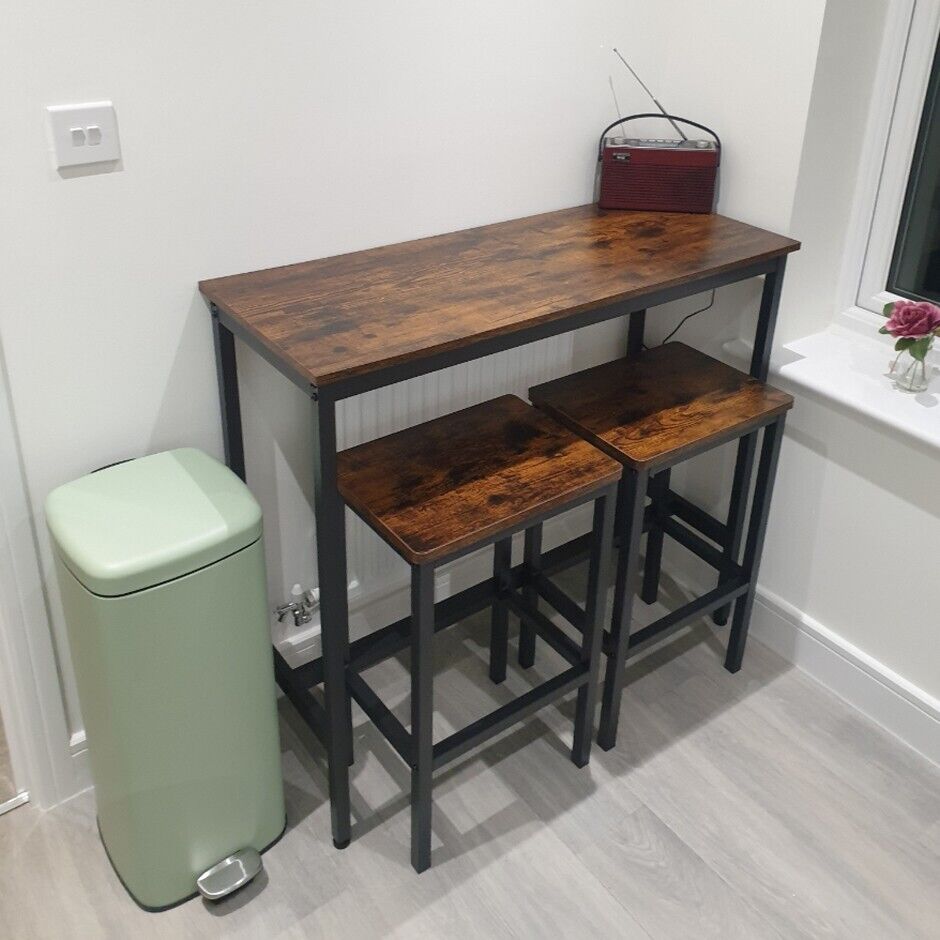 Industrial Bar Table And Stools Space Saving Breakfast Dining Set 2 Rustic Chair