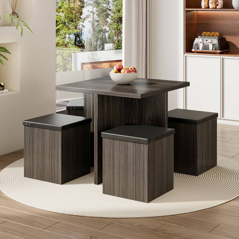 Dining Table and Chairs Set Grey Wooden Table and 4 Storage Stools Dining Set