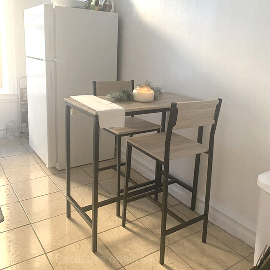 Breakfast Bar Table And Stools Kitchen Dining Room 3 Piece Compact Furniture Set