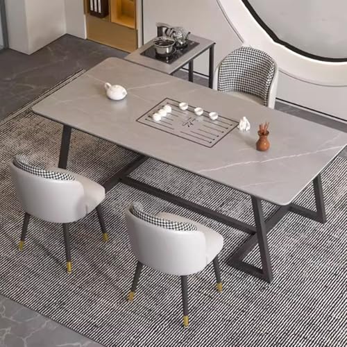 KIBONCY New Chinese Style Light Luxury Stone Slab Tea Table And Chair Set, Simple And Modern Kung Fu Tea Brewing Table And Tea Tray Set(F)