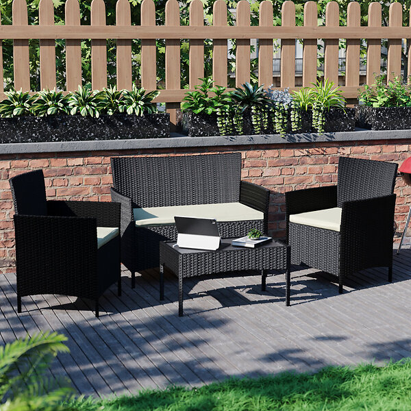 Vida (Black) Kendal 4 Seat Set Bench Chair Table Rattan Black