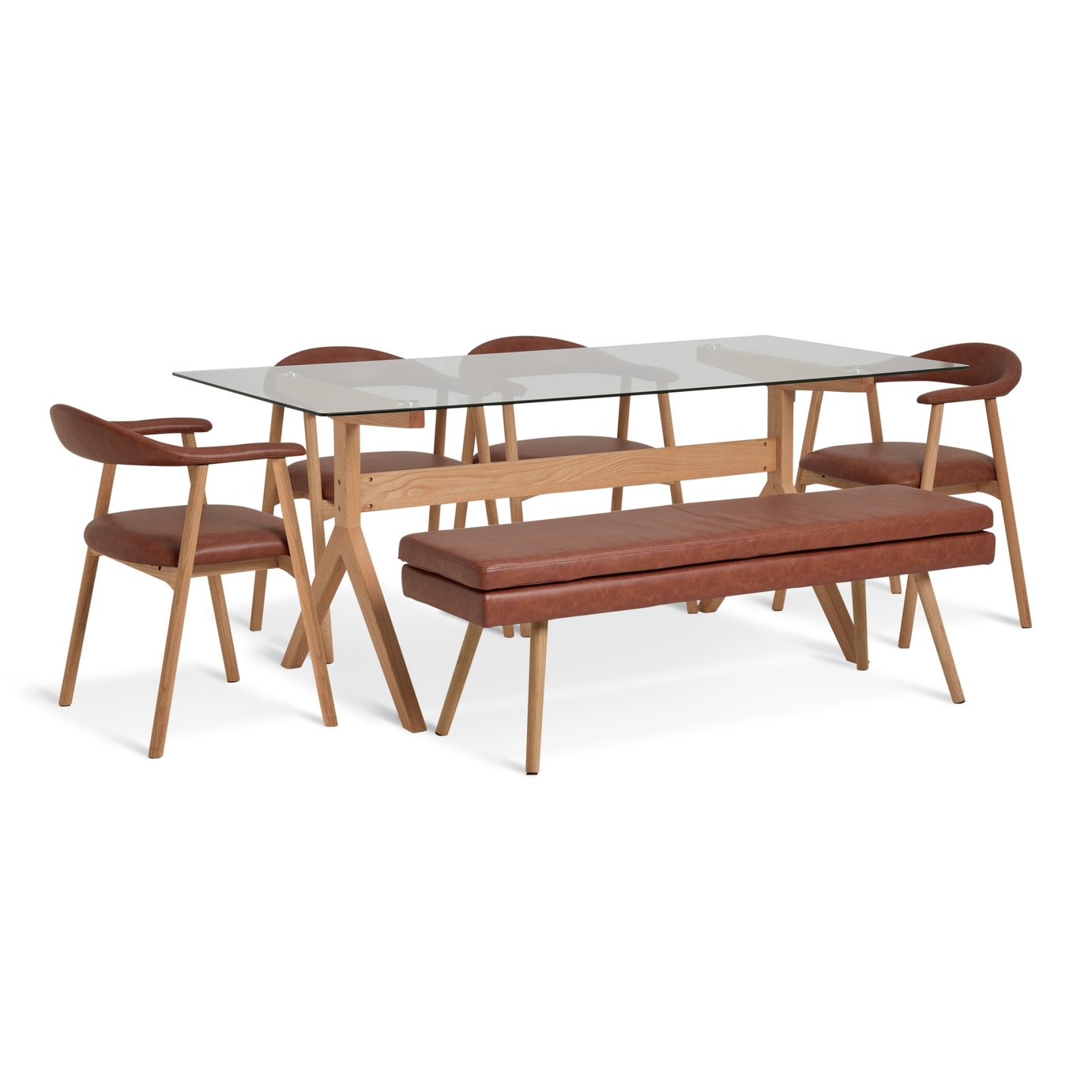 Habitat Zela Glass Natural Dining Table,1 Bench & 4Tan Chair