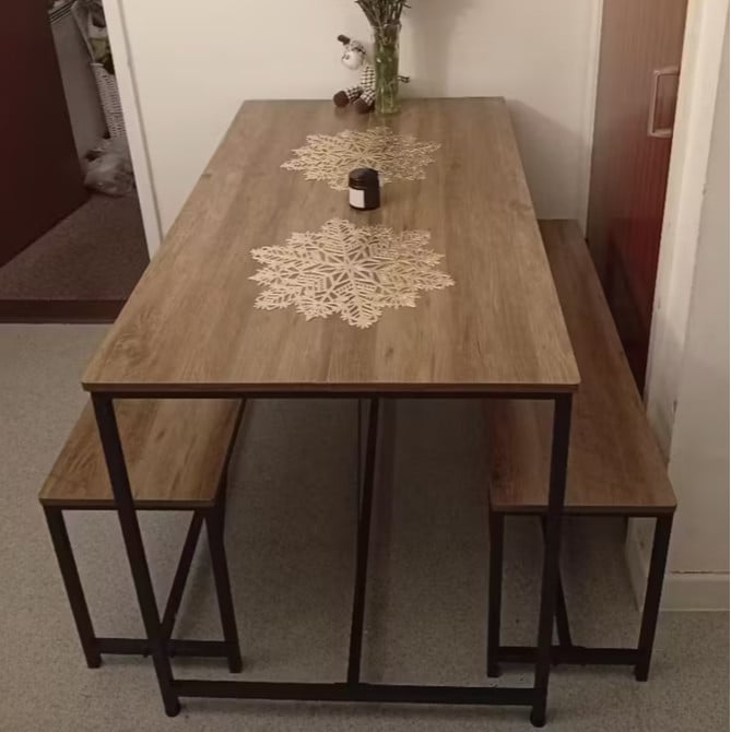 3 Pcs Modern Dining Table Set Table 2 Bench Seats Compact