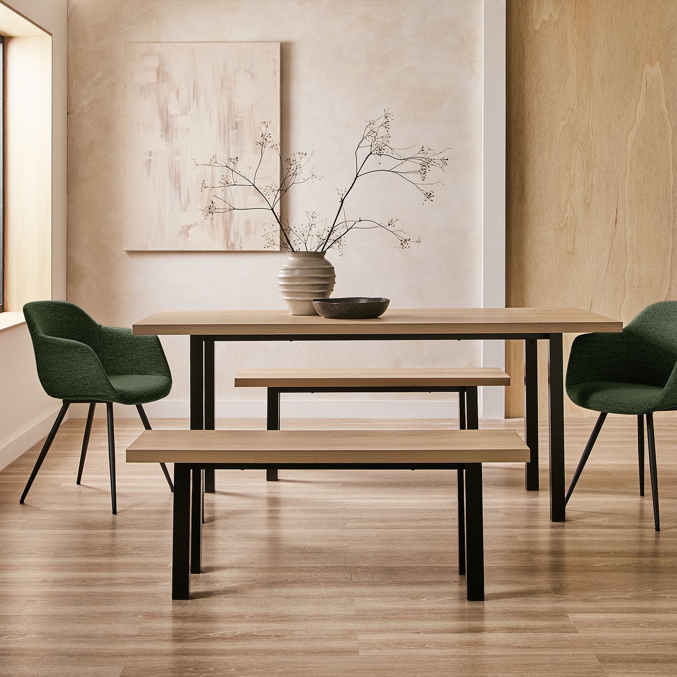 Habitat Zayn Birch Dining Table,2 Bench & 2 Green Chairs