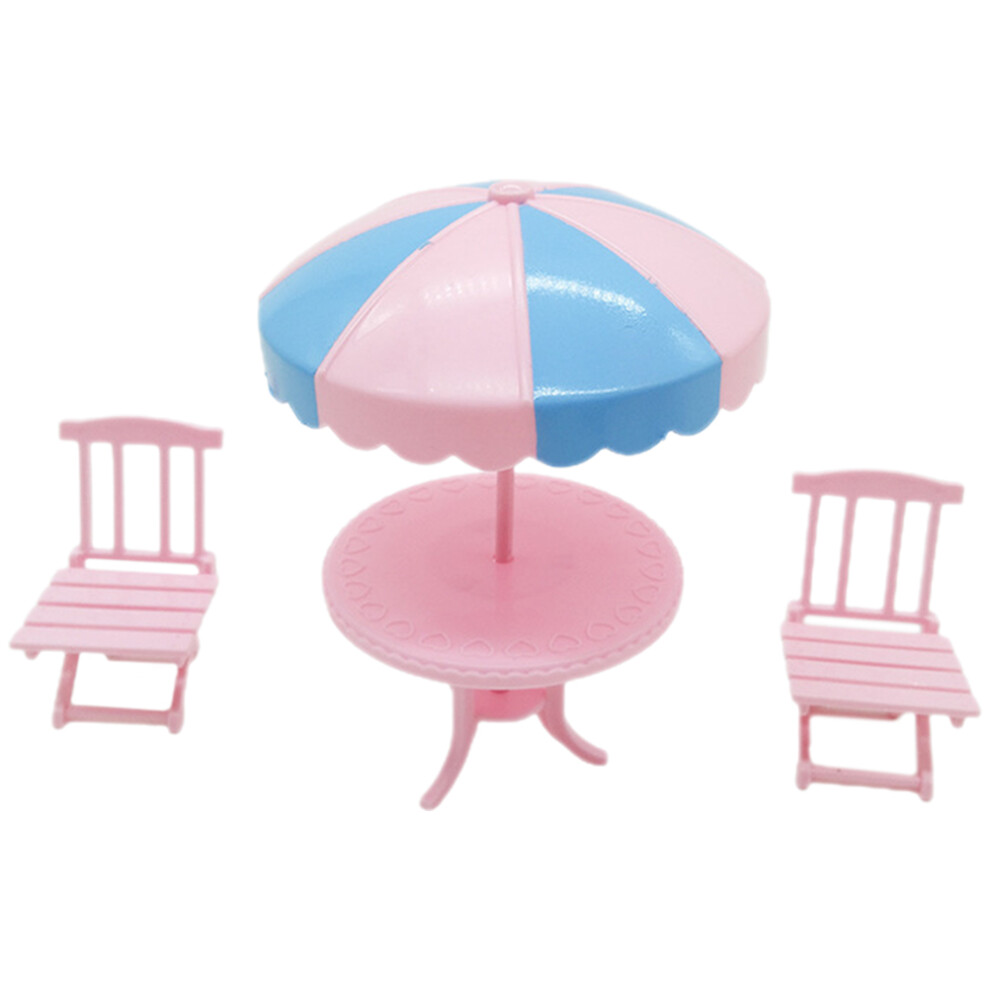 (As show, One size) 1 Set Doll House Table and Chair Mini Beach Chair Table Set Plastic Doll House Layout Decor