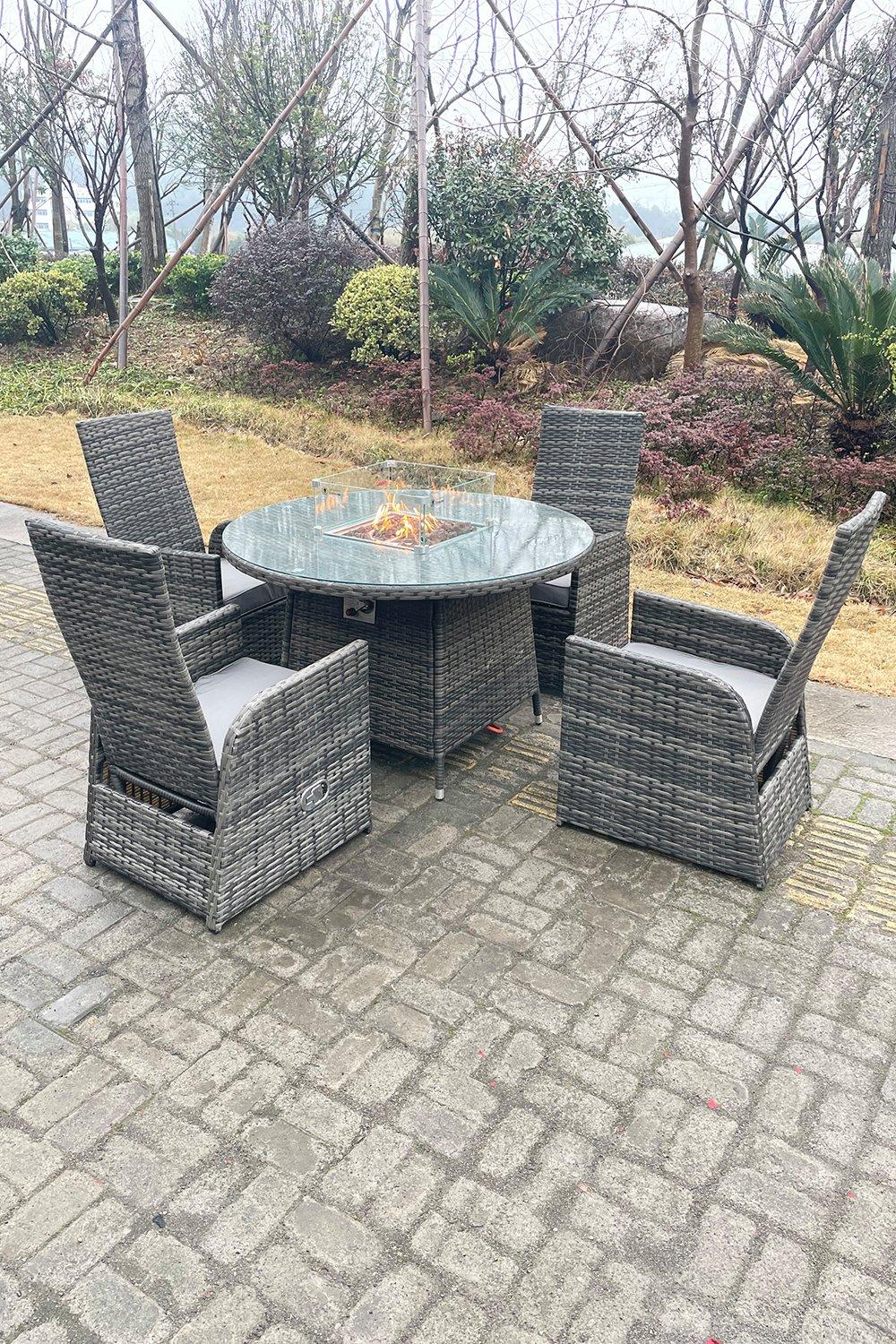 Rattan Gas Fire Pit Round Table Gas Heater Adjustable Chair Set Dining Table And Chair Set 4 Seat