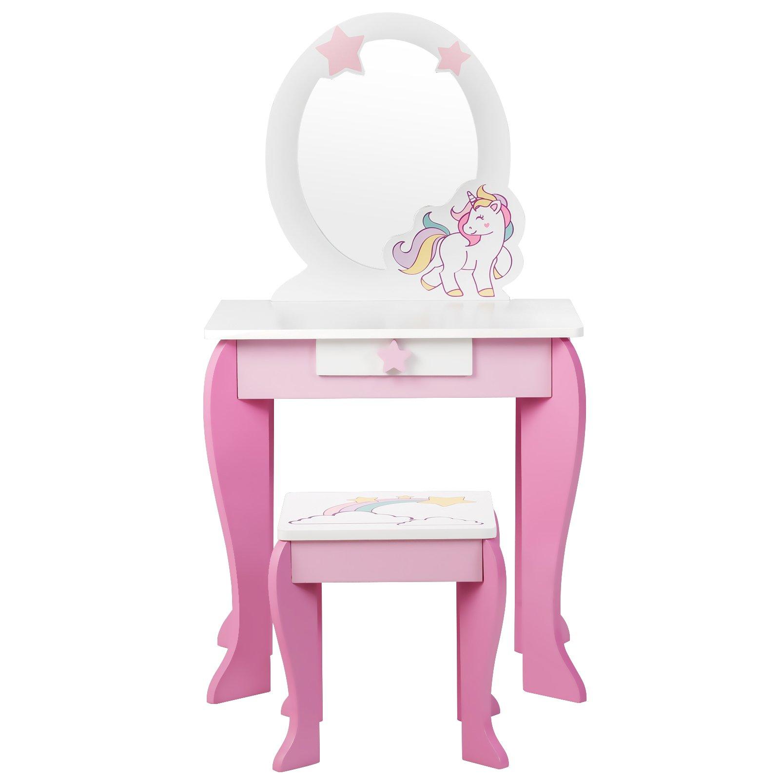 2 in 1 Kids Vanity Table and Chair Set Princess Makeup Dressing Table Writing