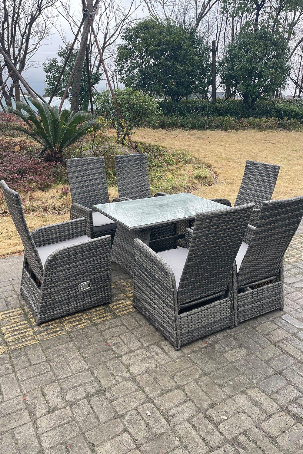 Oblong Table Adjustable Reclining Chair Rattan Dining Set Garden Furniture Table And Chair Set 6 Chairs