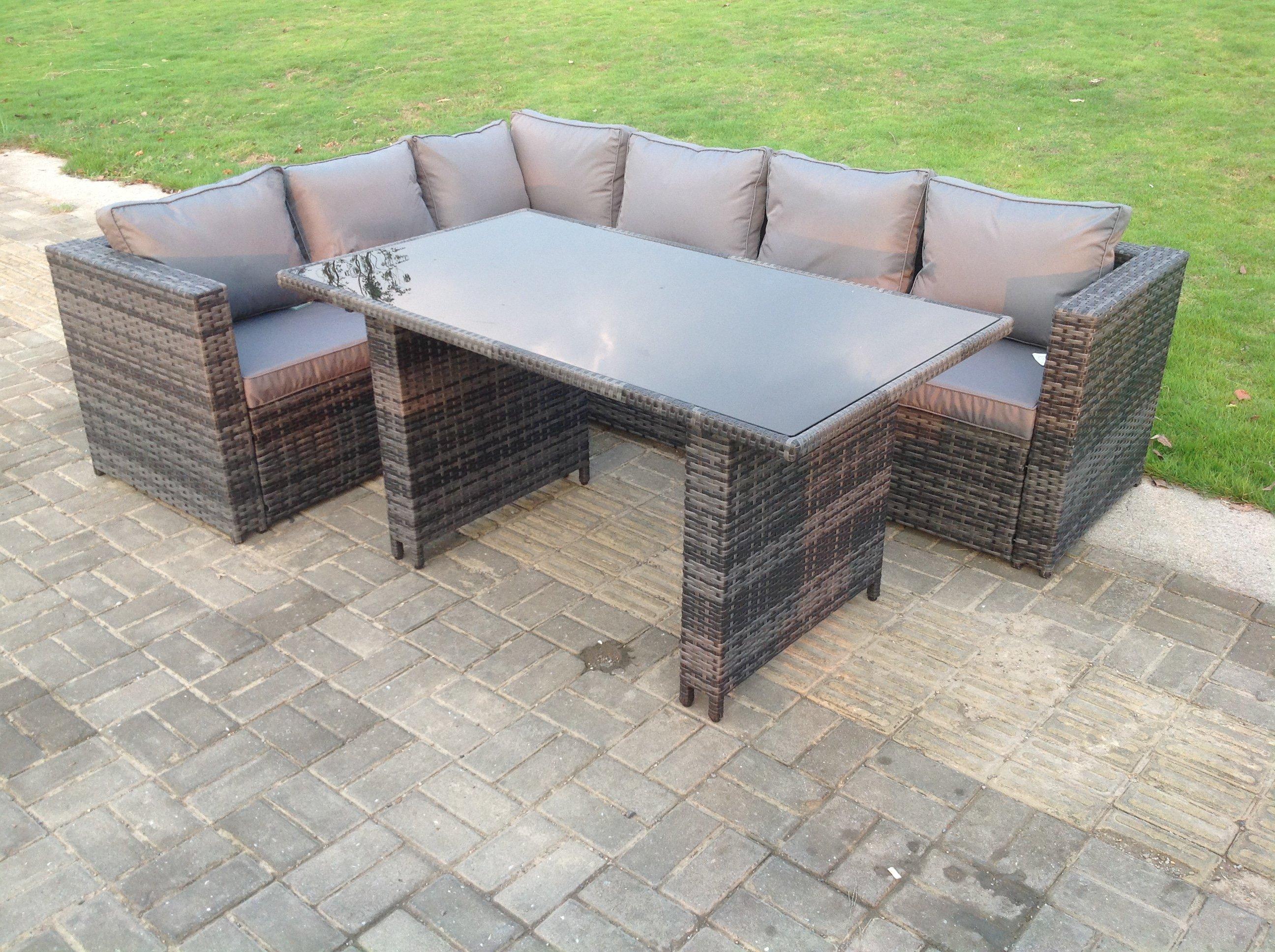 Lounge Rattan Corner Sofa Set Outdoor Garden Furniture Rectangular Dining Table Chair Set