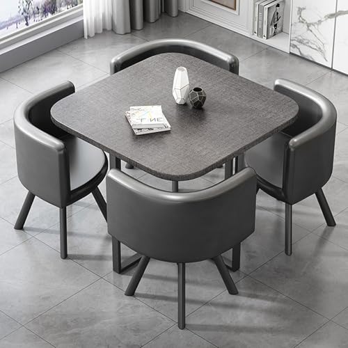 LUUYYI 5-Pcs Dining Room Table Chairs Combination, Round/Square Conference Room Table and 4 Chair for Office Reception Room Club Kitchen Coffee Shops(Gray Square+Black)