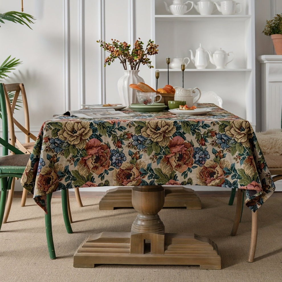 1pc Square Cotton Tablecloth American Tablecloth Embroidered Ball Flower Table Cloth Christmas Thick Tablecover Cotton Floral Pattern Table Mat Home D