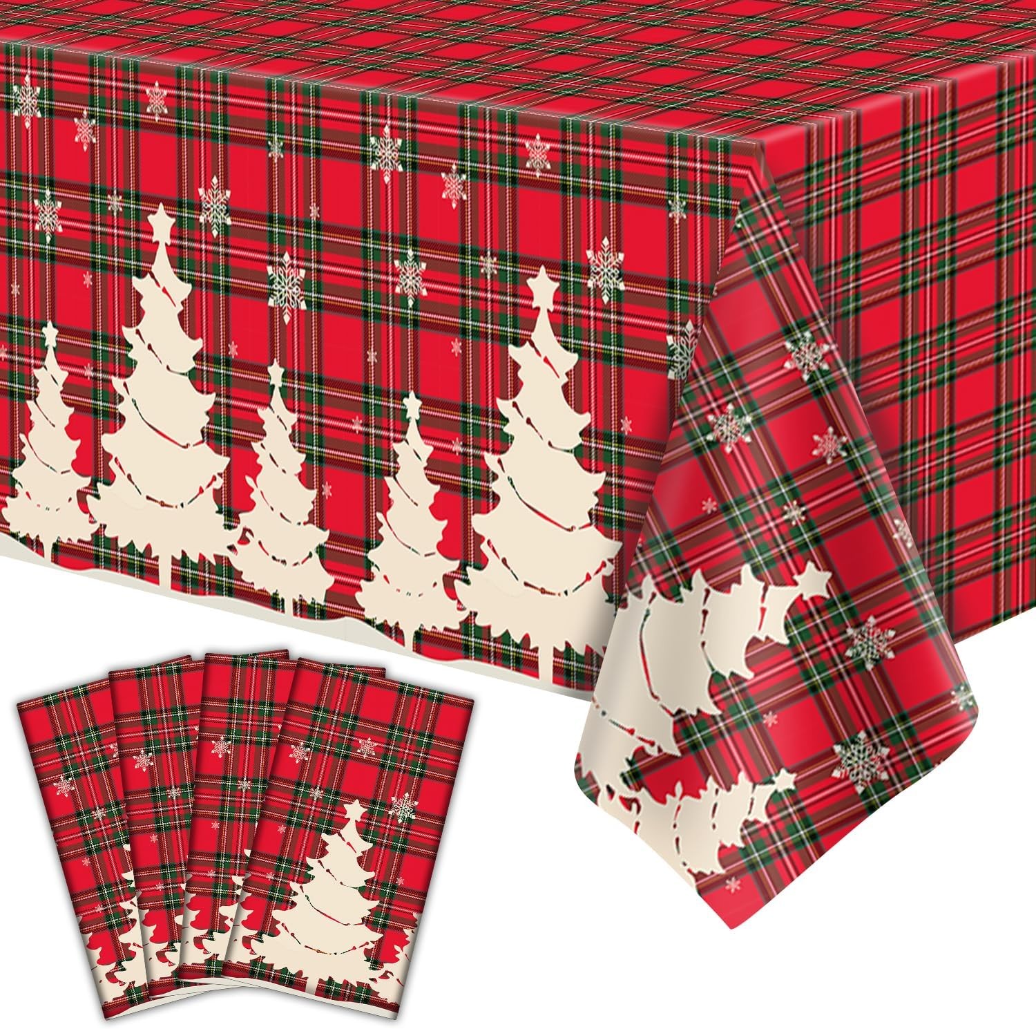 4 Pack Christmas Table Cloth Christmas Checkered Tablecloth Buffalo Plaid Table