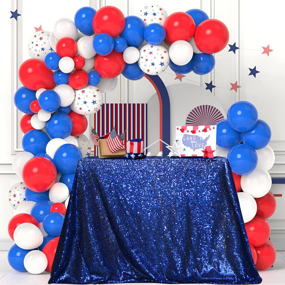 PartyDelight Sequin Tablecloth Navy Blue Sparkly Rectangular Table Cloth Wedding Sweetheart Christmas 48""""x72""""