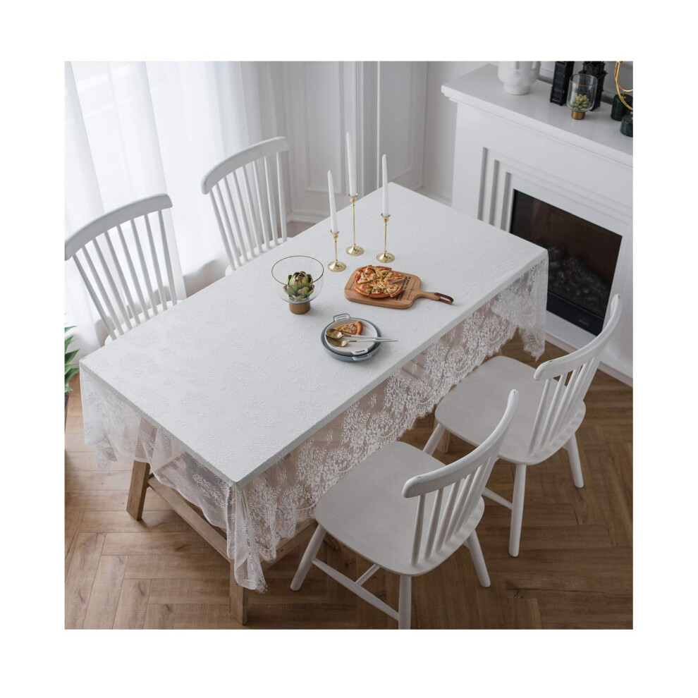 Table Cloth Vintage Lace Christmas Tablecloth With Floral Embroidery, White 145x180 cm For Parties And Weddings