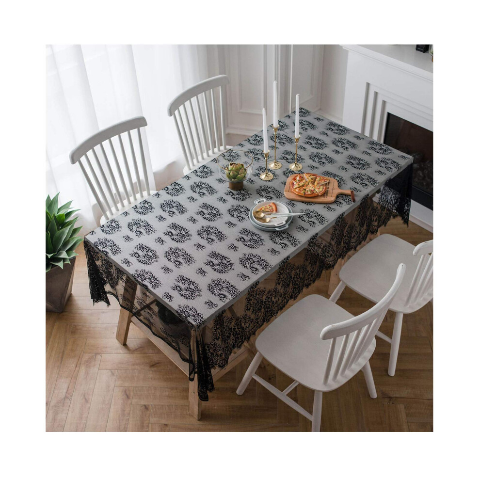 Table Cloth Vintage Lace Christmas Tablecloth Rectangle Floral Embroidered Black 145x300cm 57x118in Parties Weddings