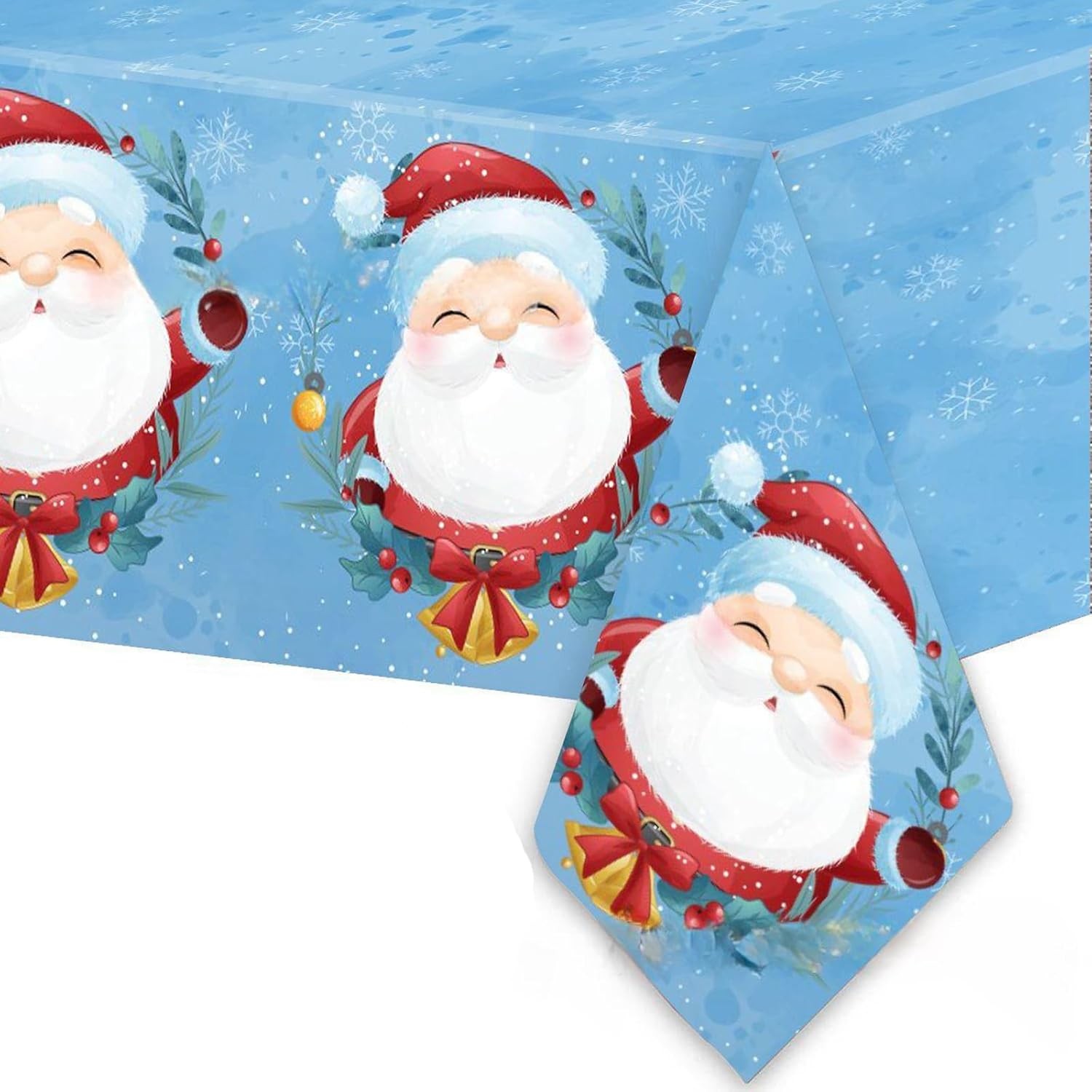 137 * 274cm Plastic Blue Santa Xmas Table Cloth Rectangle for Christmas Party T
