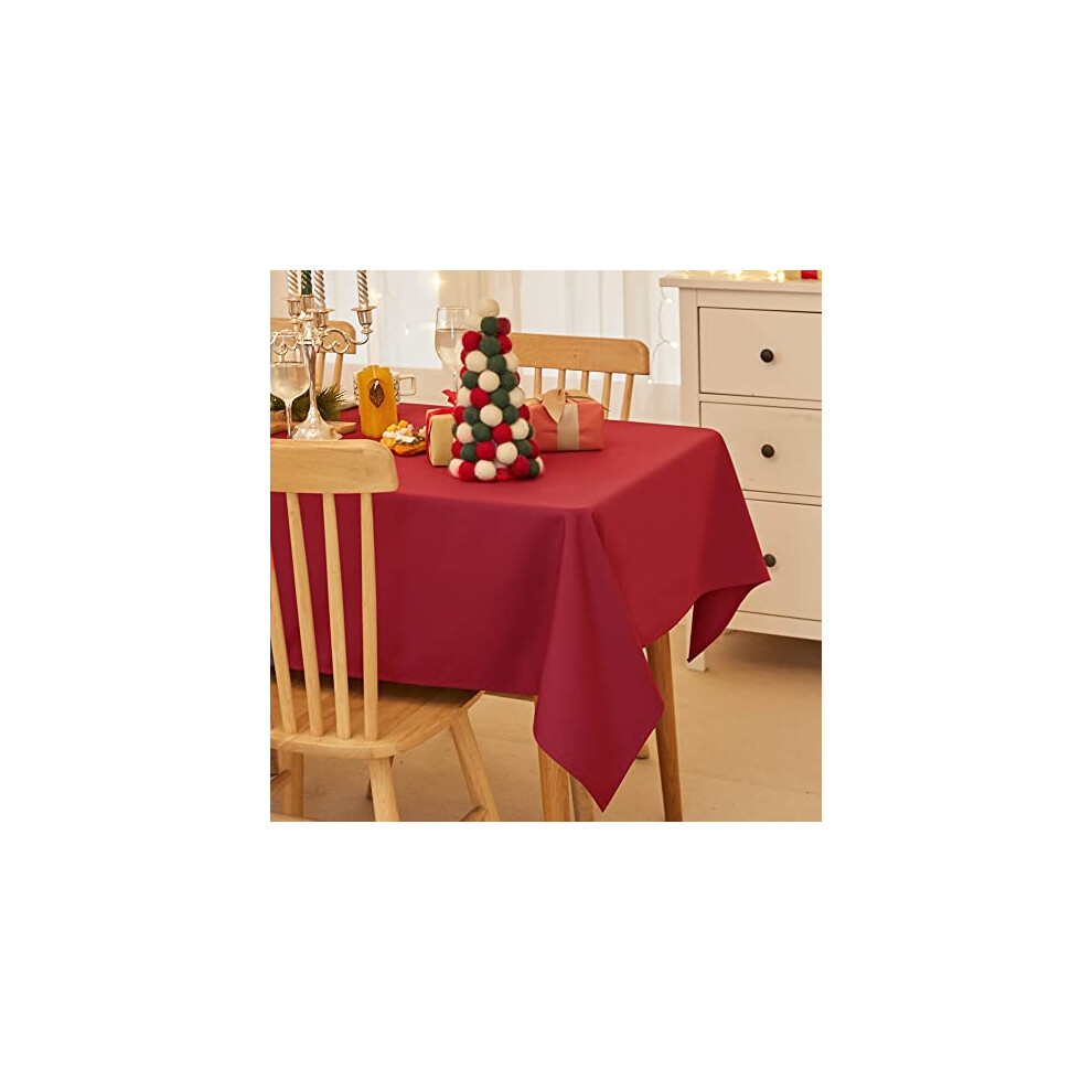 Deconovo Faux Linen Tablecloth 55x98in(140x250cm) Water Resistant Table Cloth Wipeable Table Cloth for Christmas Red