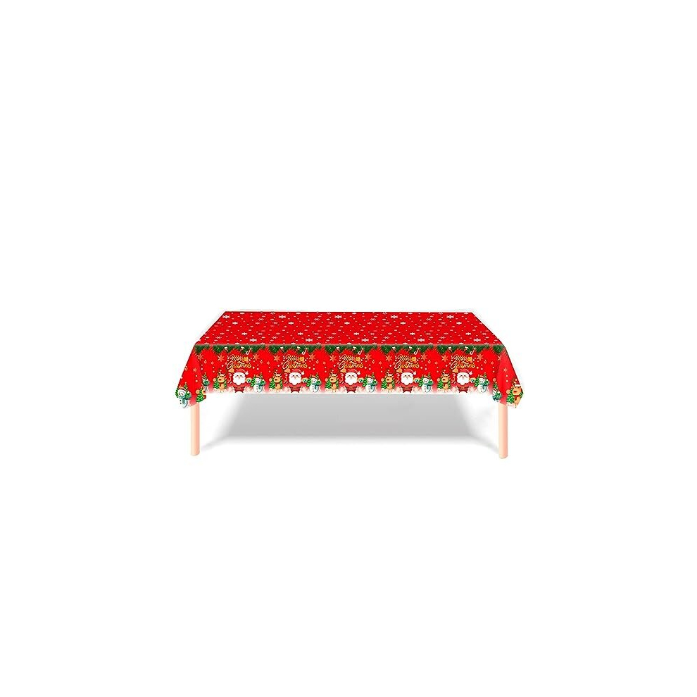 Christmas Table Cloth, Christmas Table Decoration Red Christmas Tablecloth with Santa and Snowman, 137*274cm Disposable Plastic Table Cover for Xmas