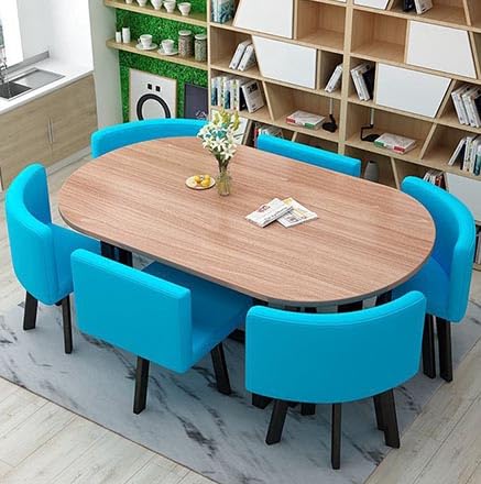 Oval Dining Table Set for 6 Chairs, Modern Dining Table & Coffee Table and 1Table and 6 Chairs Chair Set, for Kitchen Lounge Living Room, 7-Piece Meeting Room Table,02