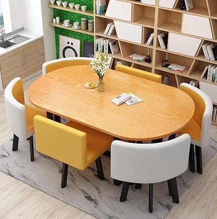 Dining Table Set, Modern 7-Piece Oval Dining Table Set for 6 Chairs - Stylish Kitchen & Living Room Furniture, Perfect for Dining, Lounge, and Meeting Spaces