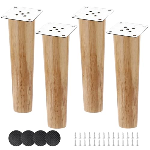 TZYYAO Set of 4 Solid Wood Furniture Legs,Sofa Legs,Tapered Replacement Legs,Dresser Legs Table Feet,For Cabinet Bed Coffee Tables,With Rubber Protection Pads,Vertical-25cm/9.8in