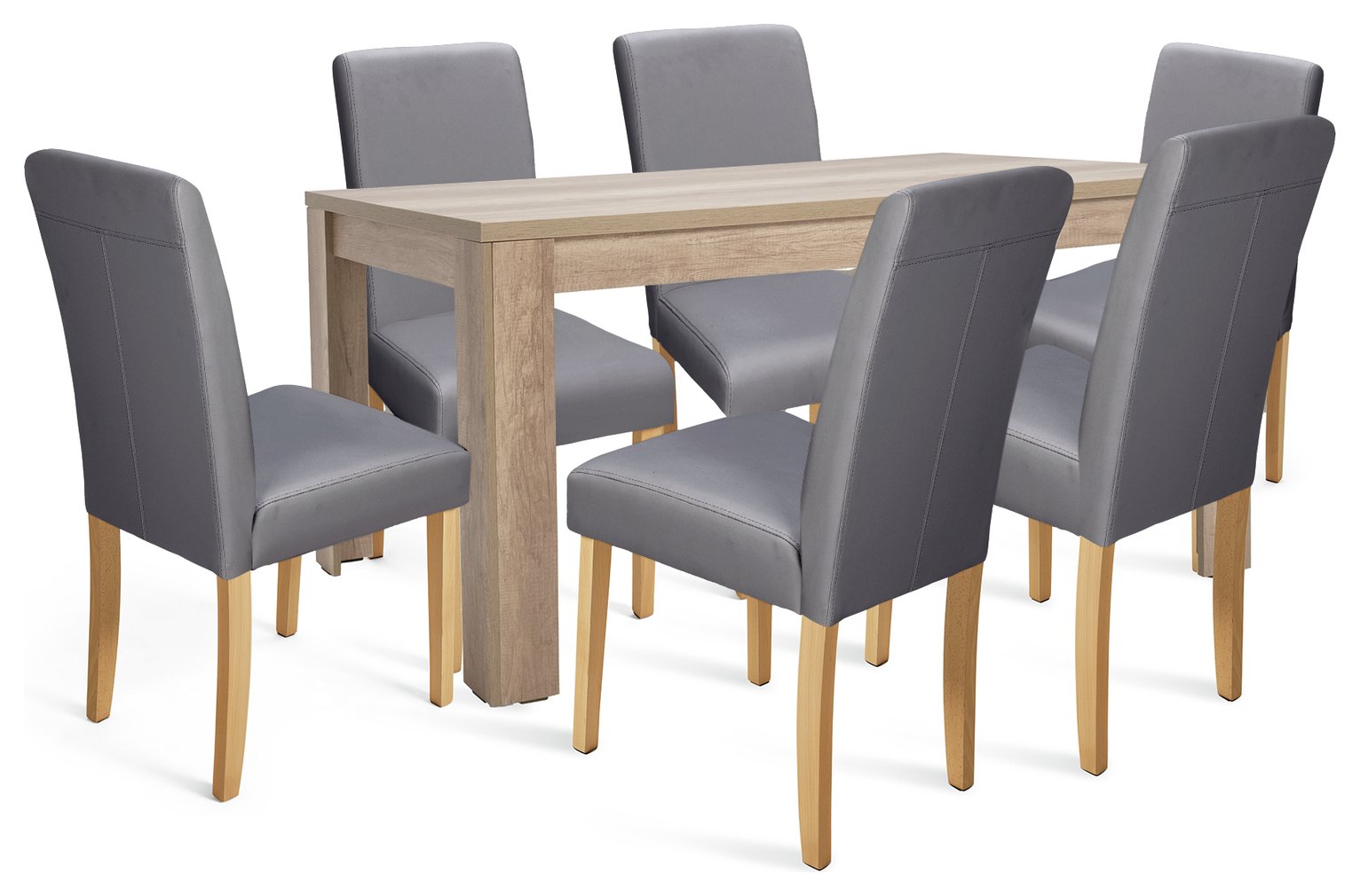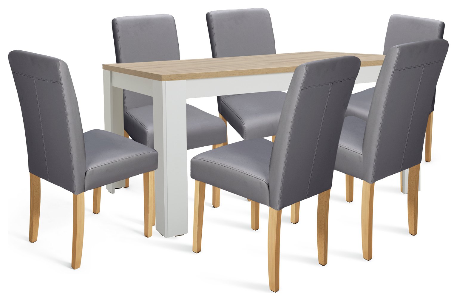 Argos Home Preston Oak Dining Table & 6 Grey Chairs