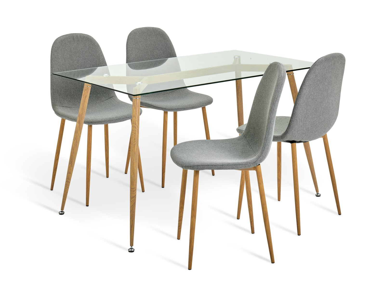 Habitat Beni Glass Oak Dining Table & 4 Grey Chairs