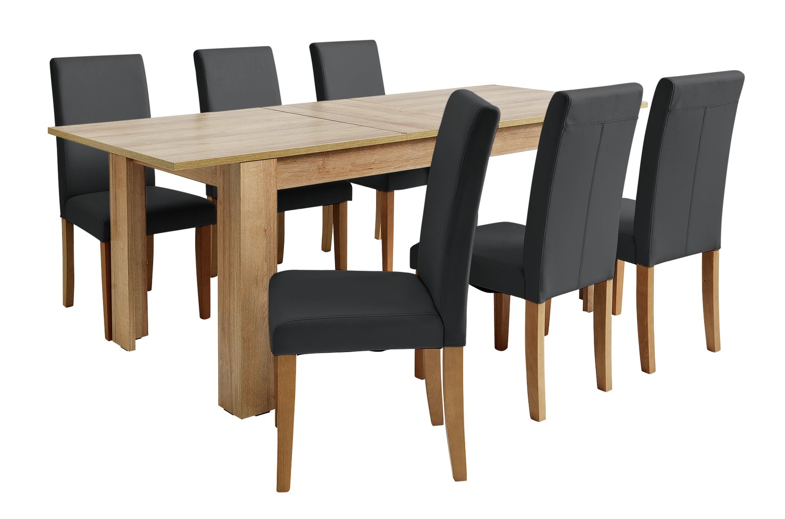 Argos Home Miami Extending Oak Dining Table & 6 Grey Chairs