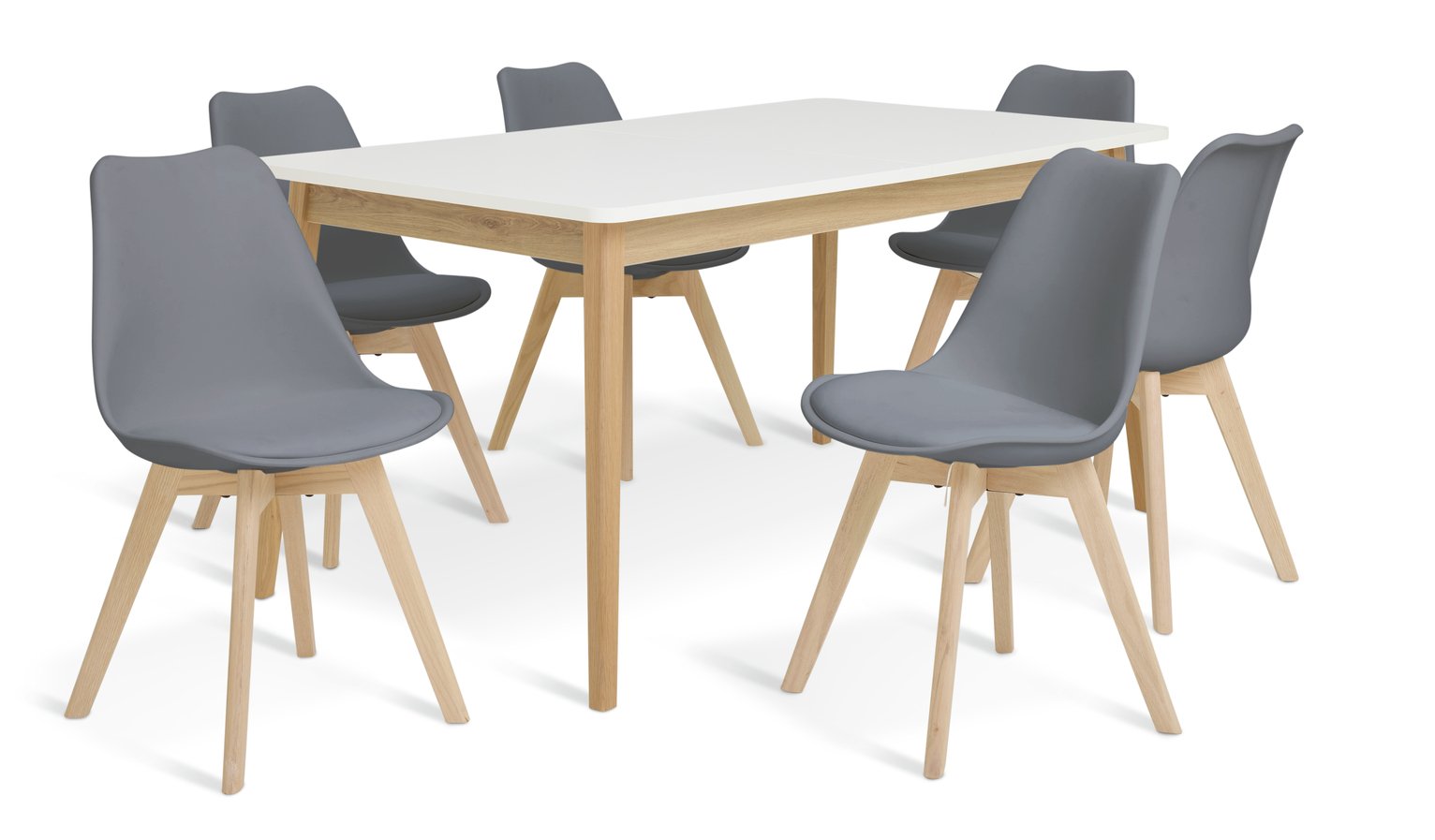 Habitat Skandi Oak Dining Table & 6 Grey Chairs