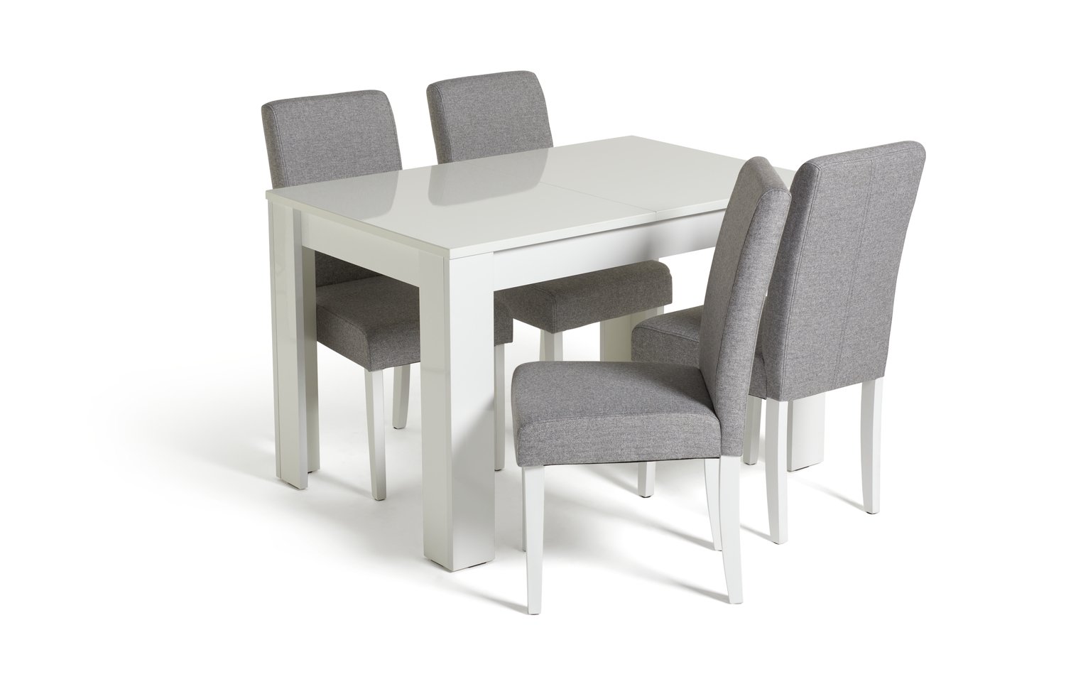 Argos Home Miami Extend White Dining Table & 4 Grey Chairs