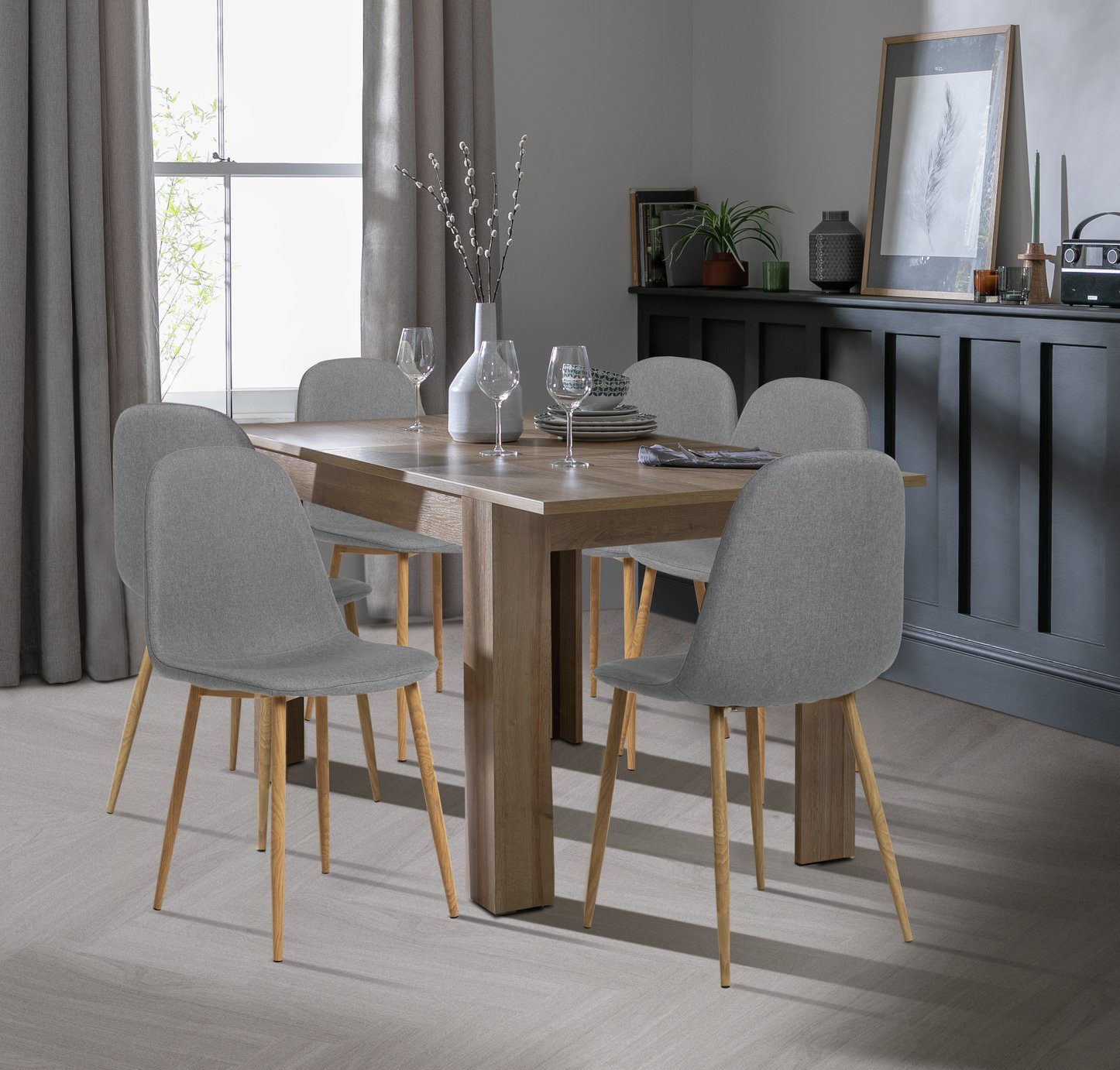 Argos Home Ashwell Ext Oak Dining Table & 6 Grey Chairs