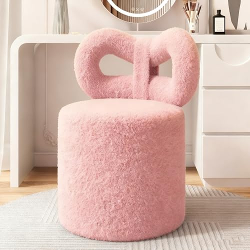 FJOADNVM Ottoman 1PC Makeup Stool Internet Famous Round Bedroom Modern And Simple Storage Chair Low Dressing Table(WHITE)