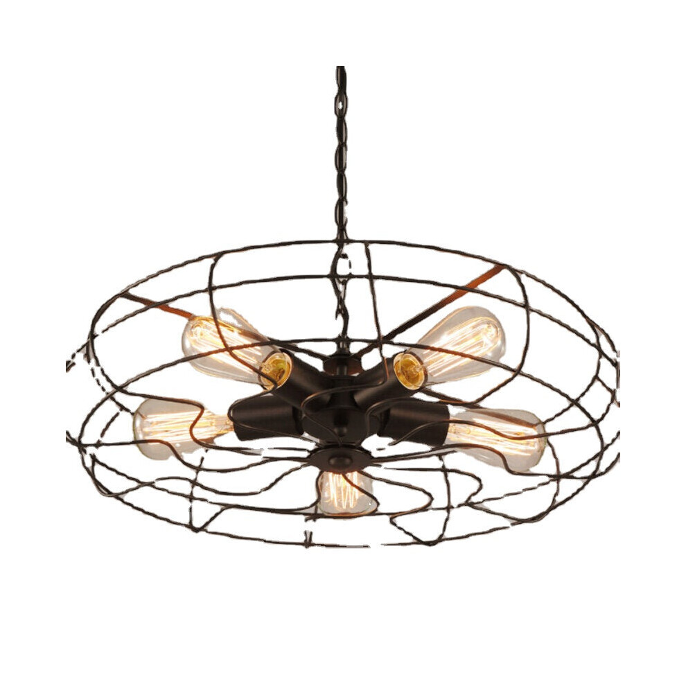 (Antique Bronze) Industrial Wind Guest Dining Cafe Chandelier American Retro Wrought Iron Fan Ceiling Lamp Bar Table Internet Cafe Chandelier