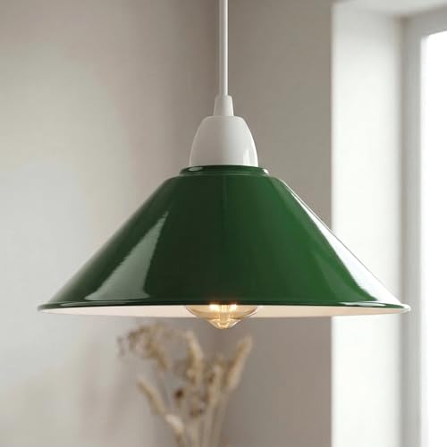 Green Industrial Lamp Shades, 8.66" Cone Lampshades for Ceiling Lights, Table Lamps & Floor Lamps, Easy Fit Pendant Light Shade Ceiling for Living Room, Bedroom, Kitchen, Hallway,& Home Décor