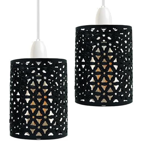 DC VOLTAGE 2 Pack Metal Lampshade Metal Drum Lampshade with Flower Pattern for Pendant Lamps Black Pendant Lamp Shades 13.5 x 11 cm for Table Lamps Floor Light